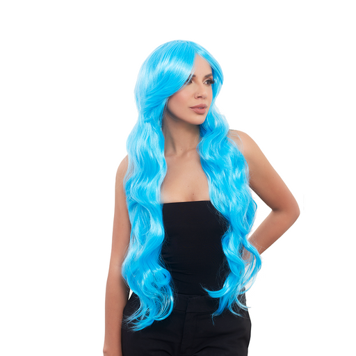 SENSUAL LOVESumérgete en un look de fantasía con esta peluca ondulada de 80 cm en un espectacular tono aguamarina. Su largo y ondas suaves crean un efecto enca...