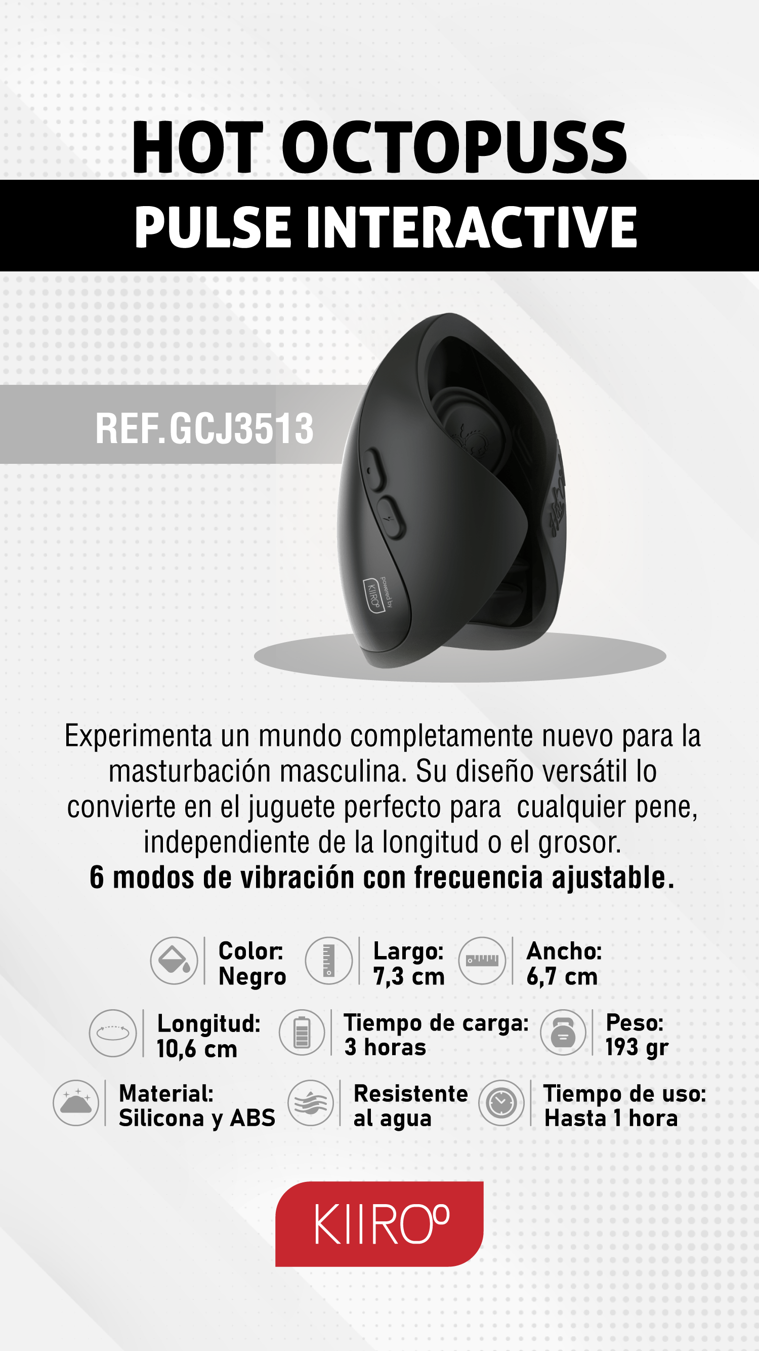 El Hot Octopuss Pulse solo utiliza la oscilación, y genera una estimulación vibratoria profunda. Este modo de estimulación también es ideal para hombres con problemas de erección, ya que las oscilaciones estimulan el pene y el perineo flácidos y por tanto se genera la erección.